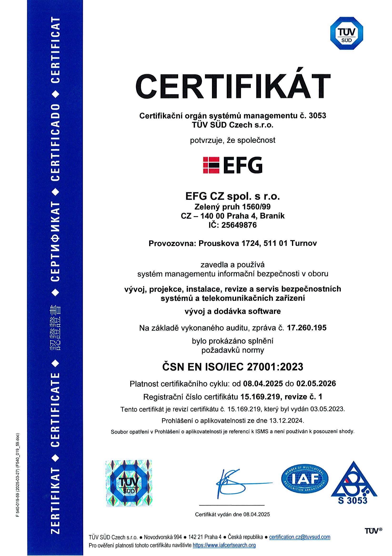 - Certifikát ISO/IEC 27001:2025